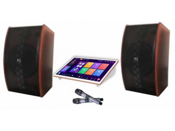 采用高灵敏度的10寸中低音单元,3寸人声超高音单元。两分频三单元设计;高音:3〞*2,低音:10〞*1。额定阻抗:8Ω;额定功率:120W 。频率响应:50--20KHZ;灵敏度:96db±2dB 点歌系统(安卓):储存类型支持:SATA硬盘,USB移动硬盘接口:USB,HDMI输出 HDMI输出:HDMI:1080P,10801,720P,480P 触摸屏:19寸高清触摸屏连续输出功率:70W*2 动态输出功率:240W*2 系统频率响应:20HZ 20KHZ
